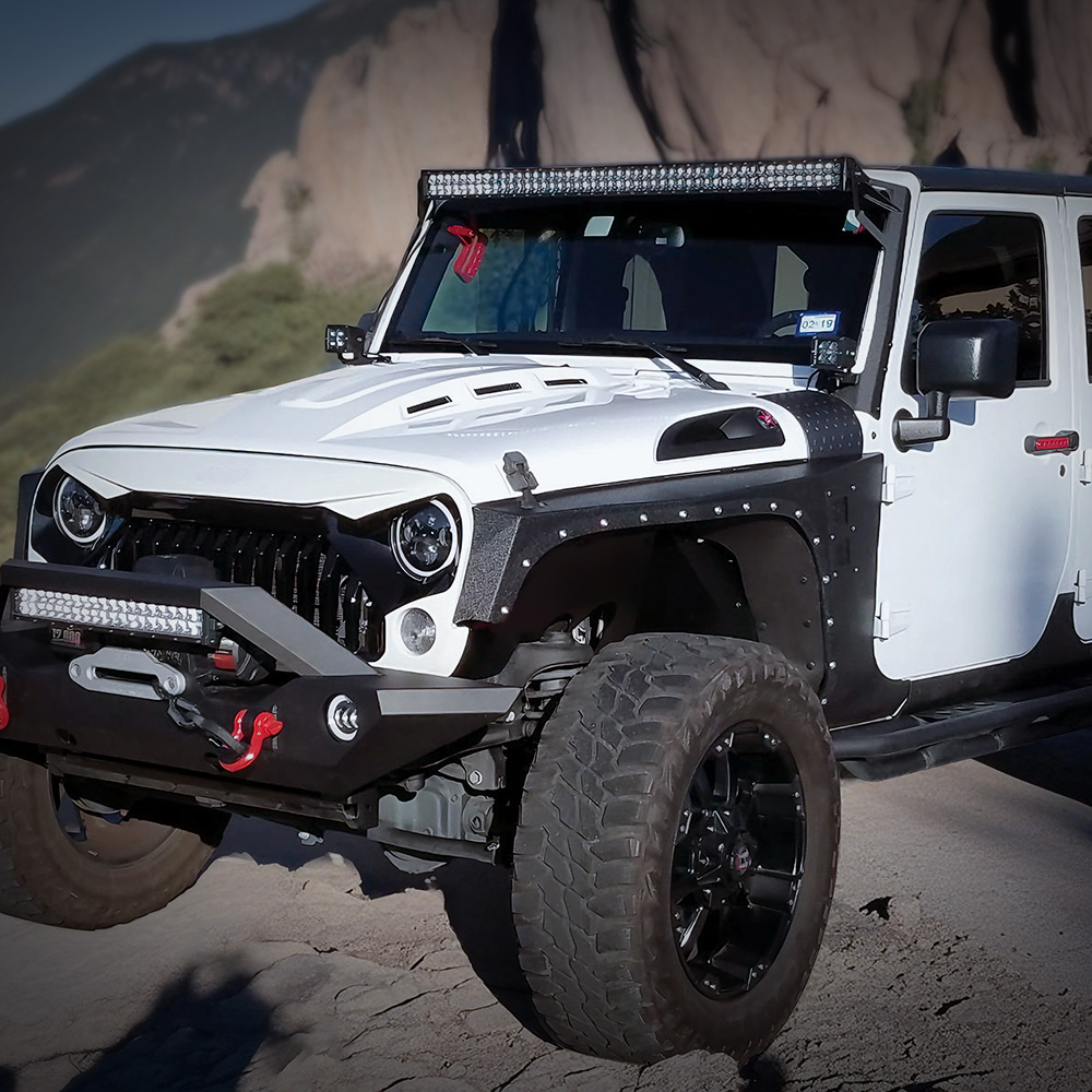 - Add Unique Personality to Your Wrangler -- The metal design hood has a protective surface that can be painted or wrapped in any color to match your Wrangler.