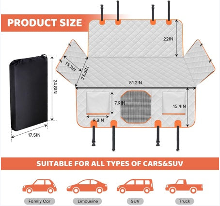 Equipped with a mesh platform and storage bag, it increases comfort and relieves anxiety, allowing your beloved dog to see you and reduce anxiety. Mesh windows provide better air circulation and visibility for your beloved dog during travel. You can closely monitor your pet during the journey. The dog seat cover has 2 built-in large storage pockets that can hold the hard bottom of the back seat, making it easy to store all your dog's essentials such as bowls, toys, and food.