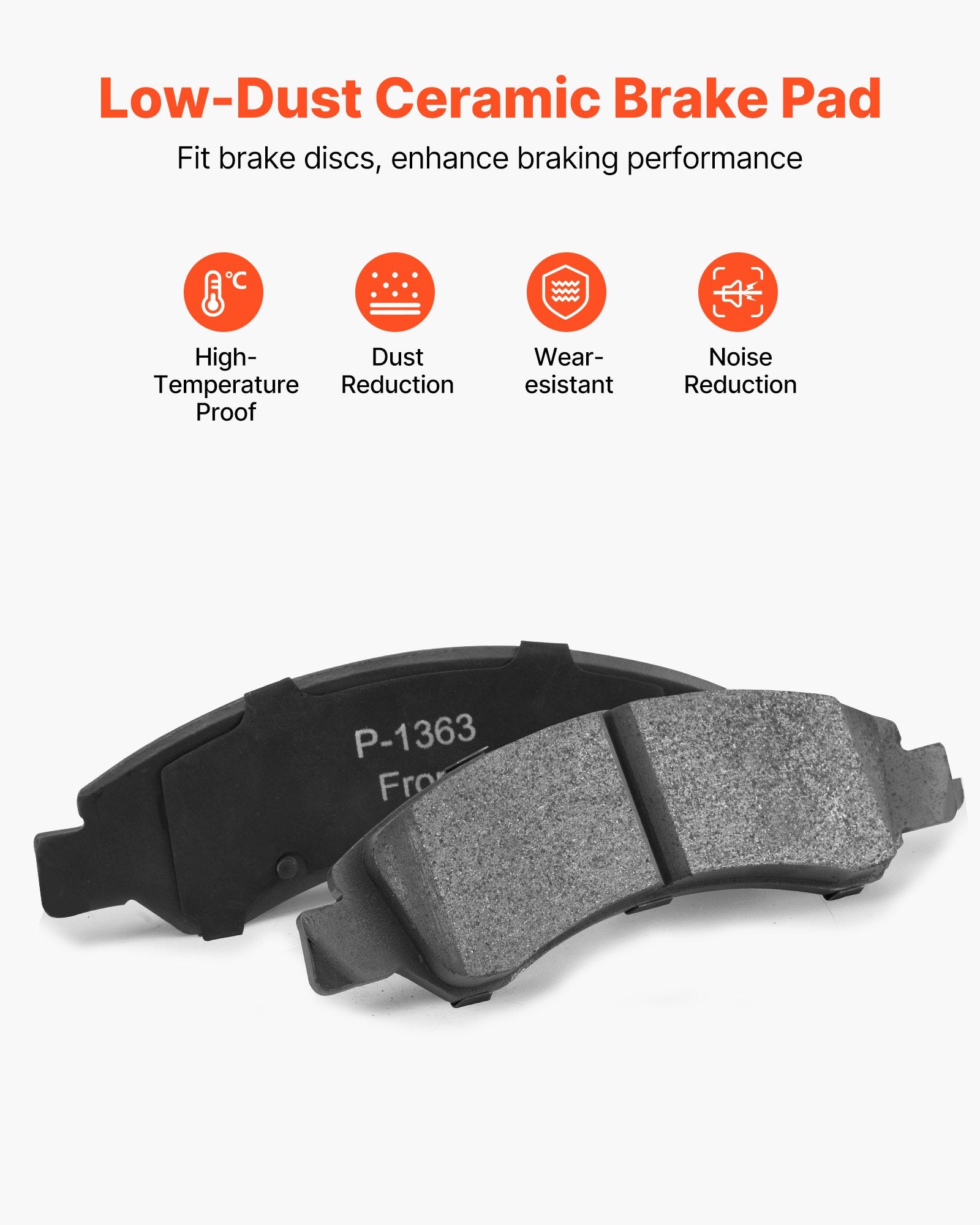 Low Dust and Noise: The brake pads are mainly ceramic, providing superior wear and fade resistance. The ceramic brake pads produce less dust during braking, while their chamfered design ensures a snug fit with the brake rotor, reducing noise