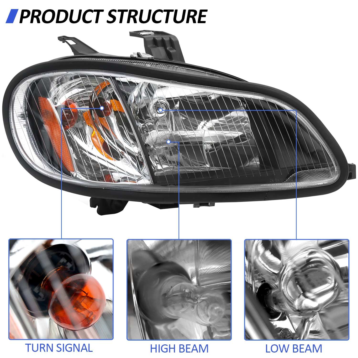 Product Name: Headlight Assembly Compatible with 2004-2013 Freightliner M2, Headlamps Head Lights Lamp Assembly Left and Right (Black)